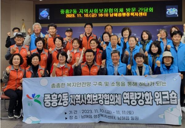 남해읍과 광주광역시 북구 중흥2동 지역사회보장협의체가 10일 남해읍에서 상호 교류의 장을 펼쳤다.