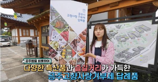 이번 영상은 54만명의 구독자를 보유하고 있는 여행 유튜버 쏘이가 공주의 명소를 여행하며 고향사랑기부제 답례품을 직접 체험해 보는 영상일기(브이로그) 형식으로 제작됐다.