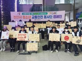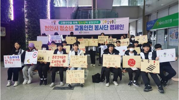천안시는 지난 11일 청소년 교통안전 봉사단이 불당동 일원에서 교통안전 의식을 높이기 위한 캠페인을 펼쳤다고 밝혔다.