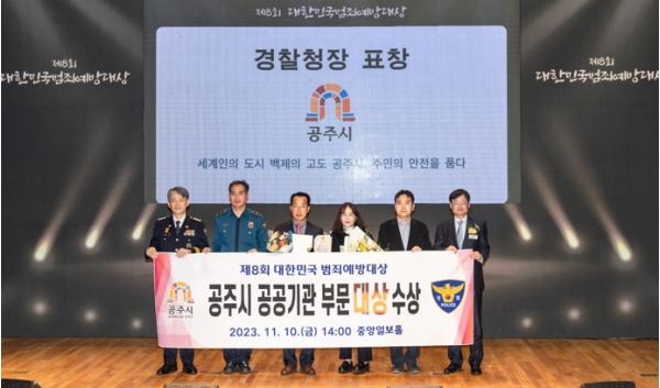 공주시는 지난 3회 수상에 이어 올해 또다시 범죄예방디자인(CPTED) 부문에서 우수기관으로 선정되며 범죄예방 안전 도시로서의 위상을 인정받았다.