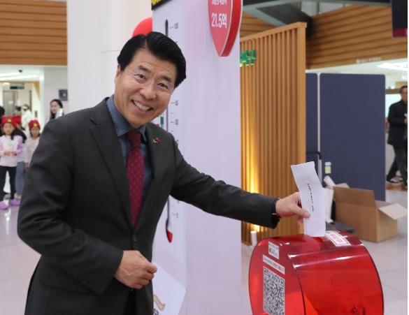 ‘사랑의 온도탑’은 모금 목표액인 21억 5천만 원을 향해 1도씩 올라가며, 송파구의 나눔 온도를 실시간으로 표시한다.