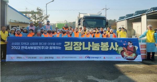 태안군에 따르면, 센터는 지난 15일 군청사 내 ‘사랑의 밥차’ 조리실에서 한국서부발전(주), ‘사랑의 밥차’, 원북면 자원봉사단, 태안발전본부 건설관리실 관계자 등 62명이 참여한 가운데 김치 담그기 행사를 마련했다.