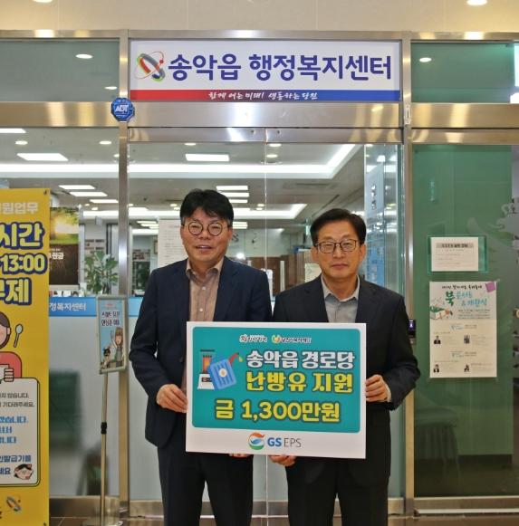 지에스이피에스는 지난 15일 송악읍 행정복지센터와 신평면 행정복지센터를 방문해 난방유 지원을 위해 써달라며 각각 1,300만 원을 전달했다.