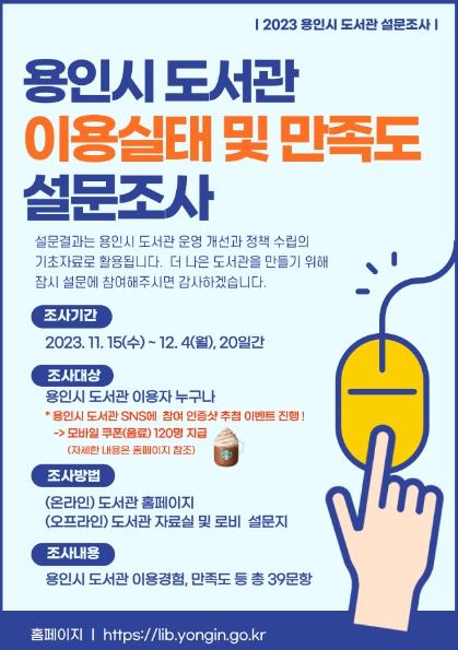용인특례시는 시 공공도서관 이용 시민을 대상으로 도서관 이용 실태 및 만족도 조사를 한다고 16일 밝혔다.