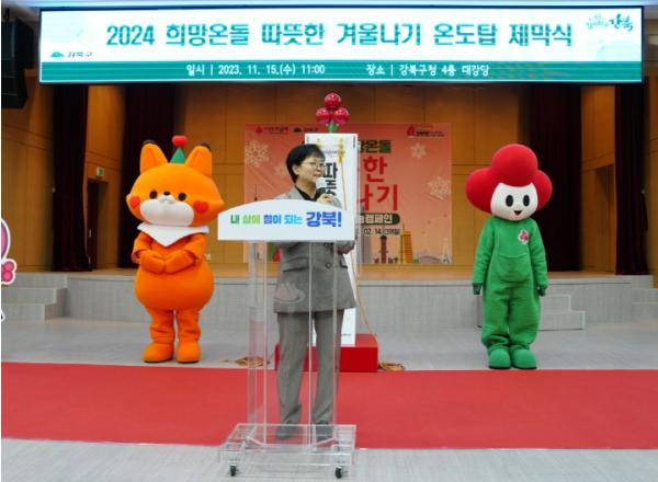 이순희 강북구청장은 제막식에서 “따뜻한 겨울나기 사업을 통해 춥고 외로운 겨울울 보낼 강북구 이웃들에게 위로와 도움의 손길을 주고자 한다”며 “많은 분들이 따뜻한 마음을 전하는 나눔 문화에 동참해 주길 바라며, 강북구 또한 소외 없이 모두가 더불어 행복한 복지도시를 만들어 나가는데 최선을 다하겠다”고 말했다.