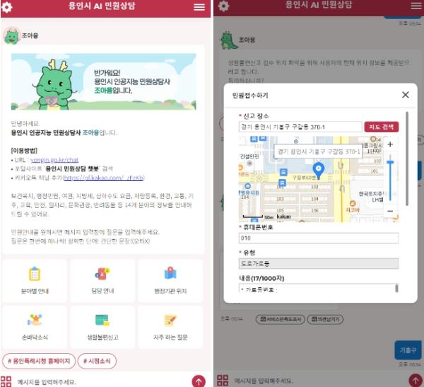 ‘용인시 민원상담 챗봇’은 카카오톡에서 시 캐릭터인 조아용을 통해 시민들이 궁금해하는 다양한 분야의 시정 정보를 한눈에 알려주는 인공지능(AI) 기반 채팅 서비스다.