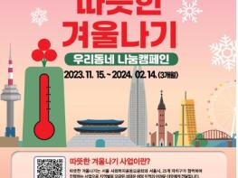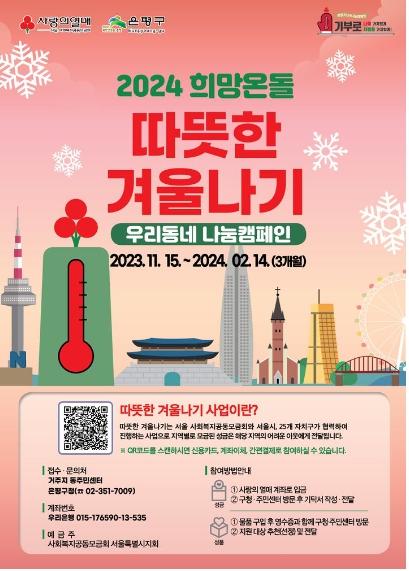은평구는 지난 15일부터 서울사회복지공동모금회(서울 사랑의열매)와 함께 ‘2024 희망온돌 따뜻한 겨울나기’ 캠페인을 진행한다고 밝혔다.