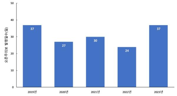 올해 발령일 수는 최근 5년간 발령일 수가 가장 많았던 2019년과 동일했으며, 2019~2023년 5년 동안 평균 31일 발령했다.