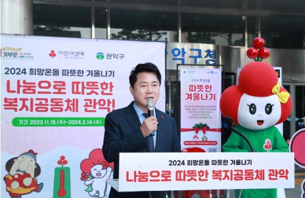 이날 관악구는 ‘사랑의 온도탑 및 모금함 설치식’을 개최, ‘2024 희망온돌 따뜻한 겨울나기’ 캠페인의 시작을 힘차게 알렸다.