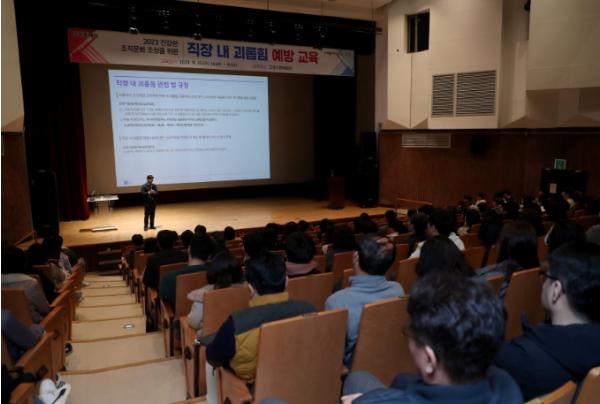 고양특례시는 지난 15일 고양시문예회관에서 직원 300여 명이 참석한 가운데 ‘2023년 직장 내 괴롭힘 예방 교육’을 실시했다.