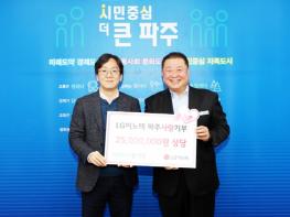 파주시는 지난 15일 엘지(LG)이노텍에서 이웃돕기 성금으로 2,500여만 원을 기부받았다.