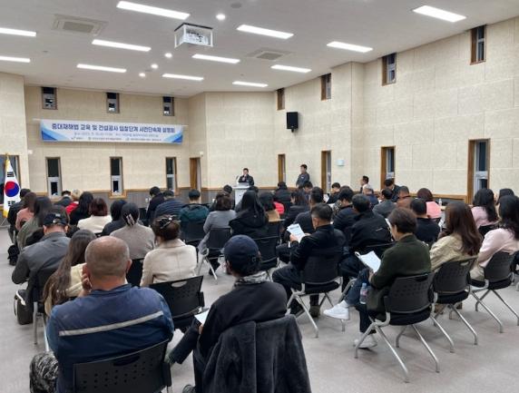 채계안 건설과장은 “안전한 건설 현장을 조성하기 위해 중대재해법 의무 이행 협조를 요청한다”라며 “이번 설명회를 계기로 건설업체가 낙찰 배제, 입찰 제한 등 불이익을 당하는 일이 발생하지 않기를 바란다”라고 말했다.