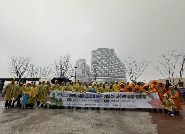 시흥시지속가능발전협의회가 ‘2023 WSL 시흥 코리아 오픈 국제서핑대회’ 개최를 하루 앞두고, 지난 16일 대회가 열리는 거북섬과 시화호의 공동 환경정화(플로깅) 활동에 힘을 쏟았다.