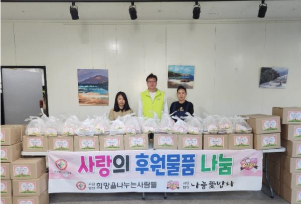(사)희망을 나누는 사람들과 (사)나눔愛밥차는 매월 봉사단원들이 모여 반찬과 국을 만들어, 어려운 이웃을 위해 후원을 하고 있다. 아울러 11월에는 연말을 맞이해 준비한 생필품 꾸러미까지 반찬과 함께 전달했다.