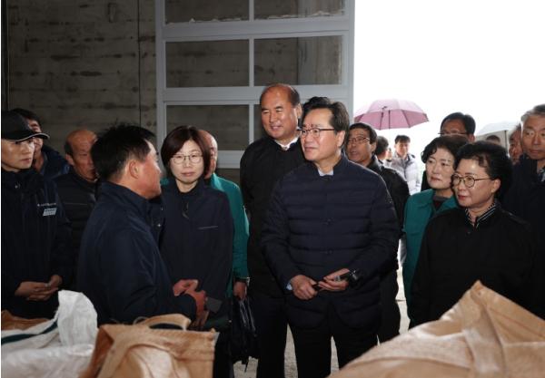 농림축산식품부 정황근 장관은 16일 상주시 공성면 공공비축미 매입현장과 상주시 농협통합 RPC를 방문하여 강영석 시장, 안경숙 시의회의장, 각 농협조합장 등 쌀 관계자 50여 명과 함께 올해 수확기 쌀값 안정을 위한 의견을 나누고 건의 사항을 수렴했다.