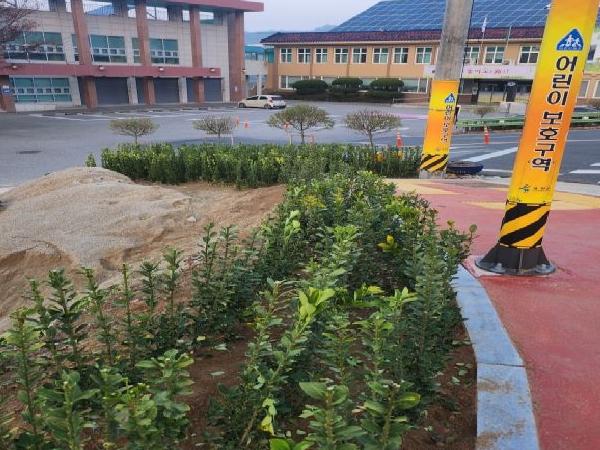 동이면 행정복지센터를 찾는 주민들에게 힐링 공간이 되고 즐거움과 행복을 담아 갈 수 있도록 양쪽 입구에 30m가량 황금사철을 식재했다.