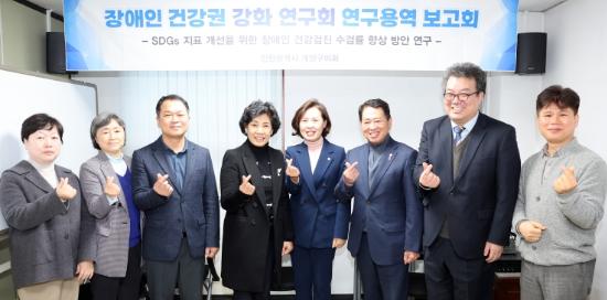 인천 계양구의회 의원연구단체인 장애인 건강권 강화 연구회(문미혜 대표의원)는 지난 16일 5층 세미나실에서 “장애인 건강권 강화 연구회 용역 최종보고회”를 개최했다.