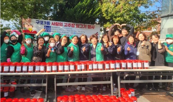 부산 북구 구포3동 행정복지센터는 구포3동 새마을부녀회가 저소득 가정의 따뜻한 겨울나기를 위한 ‘사랑의 고추장 담그기 행사’를 지난 15일 실시했다고 밝혔다.