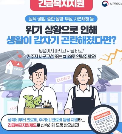 긴급복지제도는 주소득자 또는 부소득자의 실직이나 사망, 중한 질병·부상, 화재 등 갑작스러운 위기 상황으로 생계유지가 곤란한 저소득층 가구에 생계비, 의료비 등을 지원해 위기 상황에 처한 가구의 생활 안정에 도움을 주는 제도다.