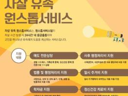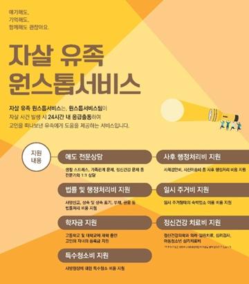 이 사업은 ▲24시간 자살 유족 응급출동 ▲사회·환경·경제영역 지원(학자금, 법률 행정 처리비, 일시 주거비, 특수 청소비, 사후행정처리비) ▲애도 상담 및 자조 모임·회복지원 프로그램 등을 운영해 건강한 이별과 일상 복귀를 지원하고 있다.