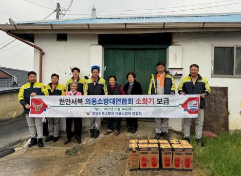 천안서북소방서 의용소방대 연합회가 지난 16일 천안시 서북구 직산읍 관내 취약계층에 소화기 보급 활동을 실시했다고 전했다.