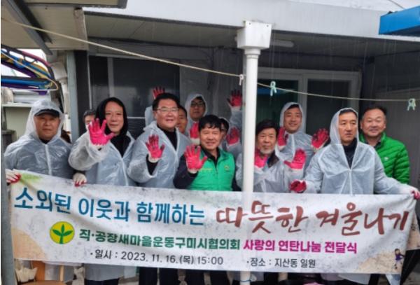 구미시는 16일 직장?공장새마을운동 구미시협의회 주관으로 지산동의 취약계층 세대에 연탄을 전달하는 나눔 행사를 개최했다.