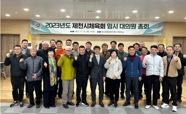 제천시체육회가 지난 16일 화산동 행정복지센터 대회의실에서 2023년도 제천시체육회 임시 대의원 총회를 개최했다.