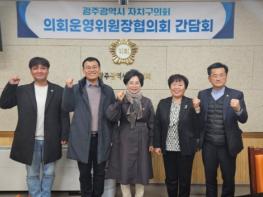한편 광주광역시 자치구의회 운영위원장협의회는 작년 8월 광주 5개 자치구의회 운영위원장으로 구성된 협의체로 지방자치 발전과 지방의회 운영에 관한 상호교류 및 협력 증진 등을 위해 정기적으로 회의를 진행해 오고 있다.