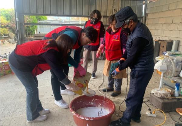 영암군재능나눔자원봉사센터가 15일 미암면여성자원봉사협의회 회원, 군청 직원들과 치킨집 폐식용유 10통을 지원받아 친환경 재활용 비누를 만들었다.
