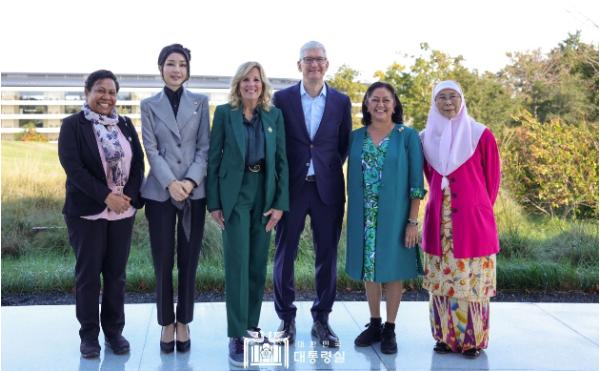 이어 김 여사는 애플 체험공간에서 내년 출시를 앞둔 애플 비전 프로 및 애플워치의 정신건강 관련 기술 시현을 둘러봤으며, 애플파크를 산책하고 애플의 원형 사옥을 방문했다.