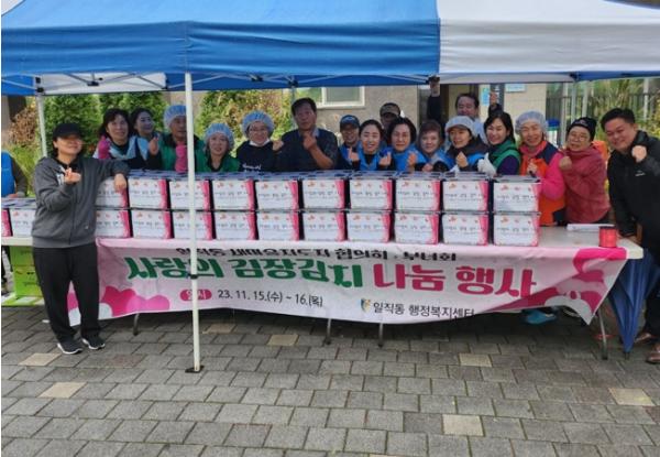 일직동 새마을지도자협의회·부녀회와 통장협의회, 바르게살기위원회 등 유관단체원 30여 명은 정성스럽게 김치를 담가 관내 소외계층 가정 80가구와 관내 경로당 8곳에 전달해 이웃들이 따뜻한 겨울을 보낼 수 있도록 훈훈한 정을 나눴다.