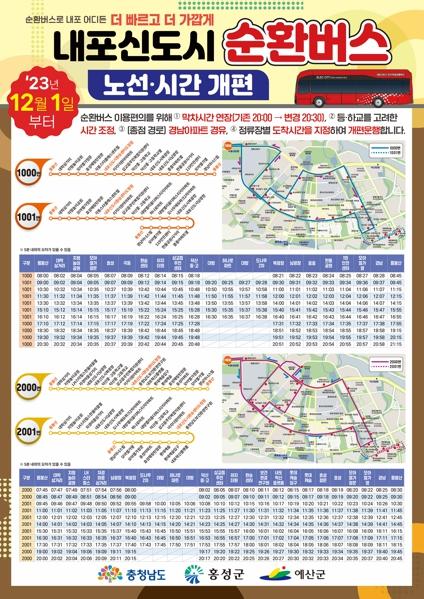 도는 주민이 내포 순환버스를 편리하게 이용할 수 있도록 주민 대상 온라인 홍보 및 홍보물 배부 활동을 펴고 정류장 게시물 변경을 통해 오프라인 홍보도 병행할 계획이다.