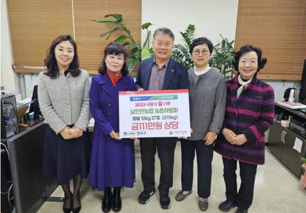 인천 연수구는 지난 16일 남인천농협 농촌사랑회로부터 지역 내 어려운 이웃들을 돕기 위한 111만 원 상당의 햅쌀 10kg 37포를 전달받았다.