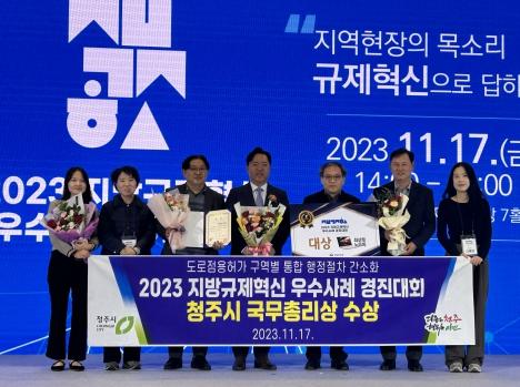 청주시는 17일 경기 고양시 일산 킨텍스에서 열린 ‘2023년 지방규제혁신 우수사례 경진대회’에서 ‘도로점용허가 대상 구역별 통합으로 행정절차 부담 완화’로 대상(국무총리상)을 수상했다고 밝혔다.
