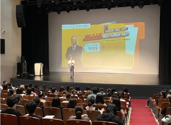 충청북도교육청 직속기관 중원교육문화원은 학생 및 학부모, 교직원, 지역주민을 대상으로 운영한 '2023. 두드림 문화아카데미 강연'을 20일에 최종 마무리했다.