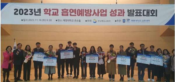 경북교육청이 지난 18일 계명대학교 간호대학에서 흡연 예방과 금연 실천 심화형 운영 학교 담당 교사와 교육지원청 관계자 총 110여 명이 참석한 가운데 ‘2023년 학교 흡연 예방 사업 성과 발표대회’를 개최했다고 20일 밝혔다.