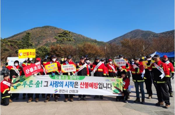 이날 ‘산불예방 캠페인’은 김진현 영천시 부시장을 비롯해 산림과 직원 및 산불전문예방진화대 등 총 50여 명이 참여했으며, 가을철 산불 발생 위험이 증가하는 시기인 만큼 산불예방 홍보 리플릿을 배부하며 산불예방 홍보영상 및 사진을 전시해 시민들에게 산불발생 위험에 대한 경각심을 고취했다.