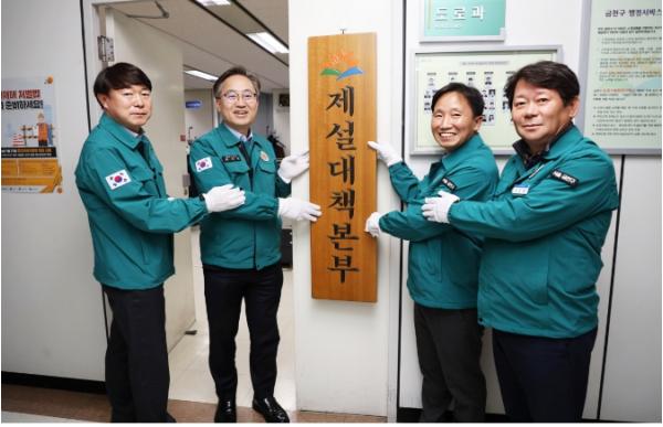 ‘제설대책’으로는 13개 실무반으로 구성된 제설대책본부를 구성했다. 평상시는 24시간 재난상황 관리와 상황전파 임무를 수행하고, 비상시에는 단계별 상황에 따라 제설 대책을 시행한다.