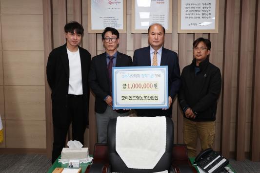 상주시 굿마인드영농조합법인에서는 11월 20일 (재)상주시장학회에 상주시 인재육성 및 소외계층 교육기회 확대에 힘써달라며 지난해에 이어 올해도 장학금 100만 원을 기탁했다.