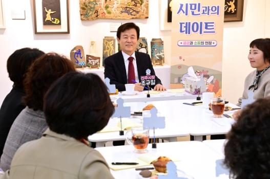 조규일 진주시장은 20일 진양호 물빛갤러리에서 ‘제15기 참진주여성대학생’과 11월 시민과의 데이트 시간을 가졌다.