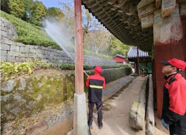 이날 합동훈련은 초기대응, 산불확산에 따른 초기진화, 관계기관 역할 분담과 진화지원, 문화재보호, 잔불 정리 등의 순서로 진행됐다.