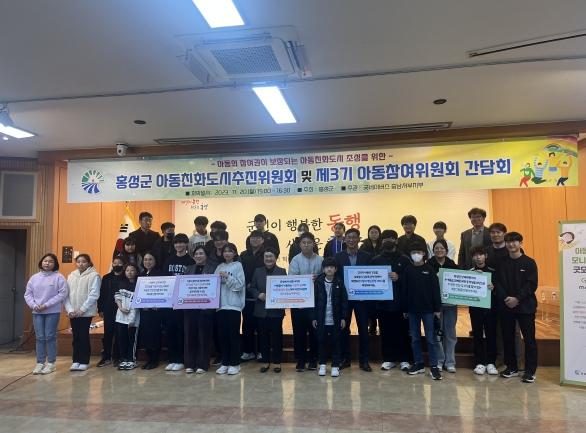 홍성군은 아동의 참여권이 보장되는 아동친화도시 조성을 위해 ‘제3기 홍성군 아동참여위원회 간담회’를 20일 군청 대강당에서 개최했다.