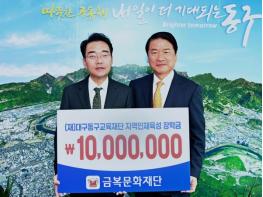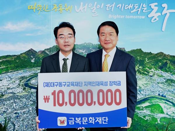 금복문화재단은 지난 21일, (재)대구동구교육재단(이사장 윤석준)에 지역 인재 육성을 위해 써달라며 장학금 1천만원을 기탁했다.