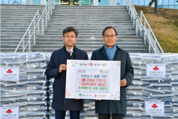 영주시는 트루파인더에서 21일 영주시청을 방문해 쌀(10kg) 715포(2000만원 상당)을 기탁했다고 밝혔다.