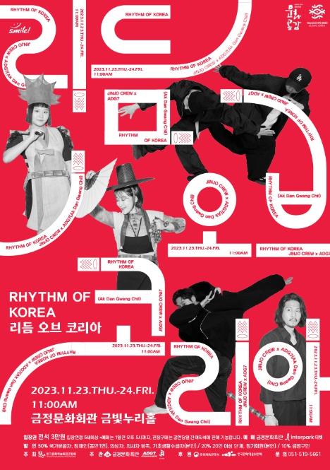 이날 공연 ‘리듬오브코리아’는 브레이킹 댄스에 한국적인 요소를 녹여낸 ‘진조크루’와 국악을 현대적으로 해석한 ‘악단광칠’ 등 두 단체의 협업으로 진행한다.