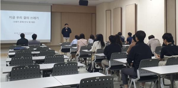 이번 교육은 ▲ 거대한 가속과 인류세 위기 ▲ 점증하는 자원공급의 위기 ▲ 쓰레기 문제를 바라보는 관점 ▲ 순환경제의 시대의 도래 ▲ 올바른 분리배출 방법 등 현재 우리가 직면한 환경문제와 이를 해결하기 위한 자원순환 실천 방안을 중심으로 교육을 진행했다.