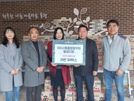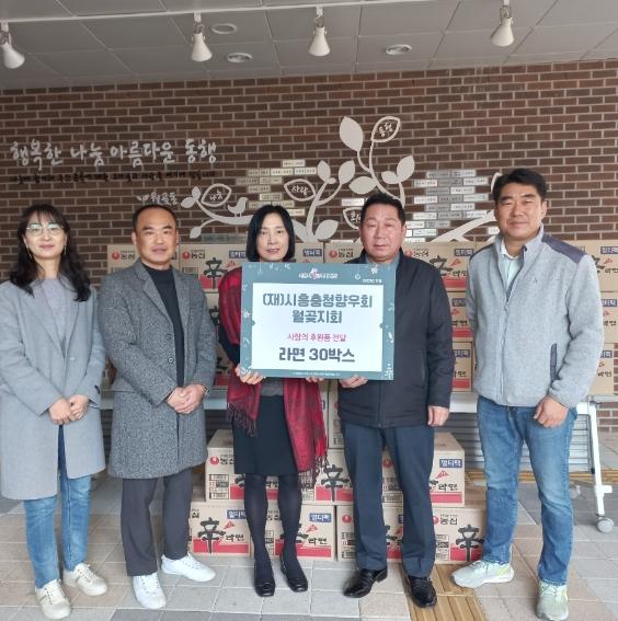 (재)시흥충청향우회 월곶지회는 자녀 양육 및 생계유지의 어려움을 겪는 한부모 가구, 독거 어르신 등의 취약계층이 따뜻한 겨울을 보낼 수 있도록 지원하고자 라면을 기부했다.