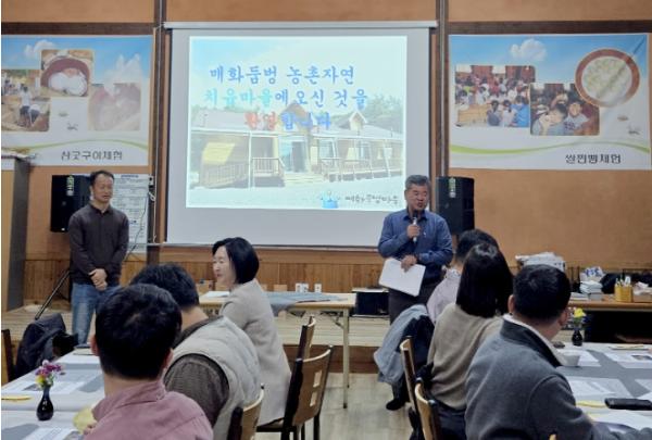 군은 지난 22일 원북면 동해리 ‘매화둠벙마을’에서 군 농업기술센터 및 충남 농업기술원 관계자 등 20여 명이 참여한 가운데 ‘농촌자원 활용 치유 프로그램 보급 사업 시연회’를 열었다고 밝혔다.