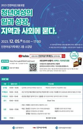 인천여성가족재단이 12월 5일(오후 3시) 재단 소강당에서 ‘2023 인천여성고용포럼’을 개최한다.