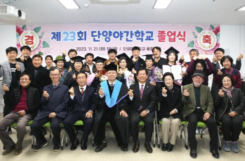 단양야간학교는 성인문해교육지원센터에서 2023년 검정고시 합격자를 대상으로 지난 21일 제23회 졸업식을 개최했다.